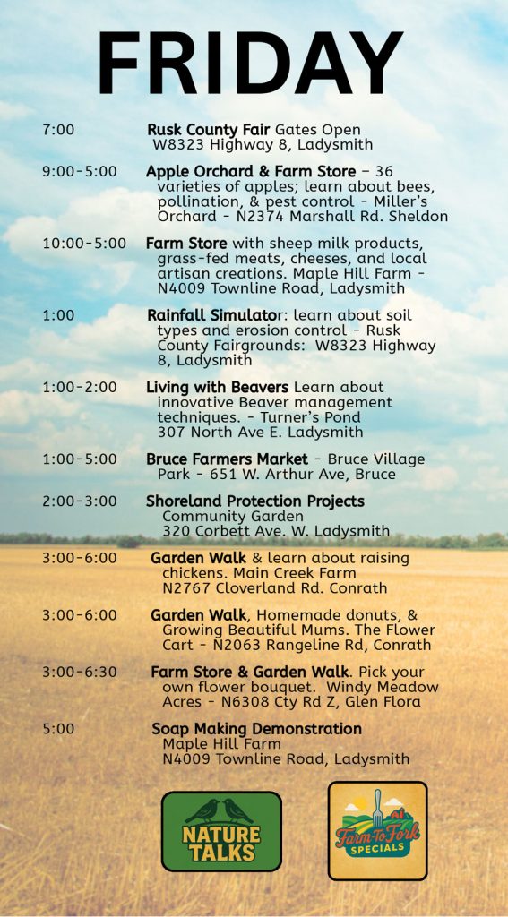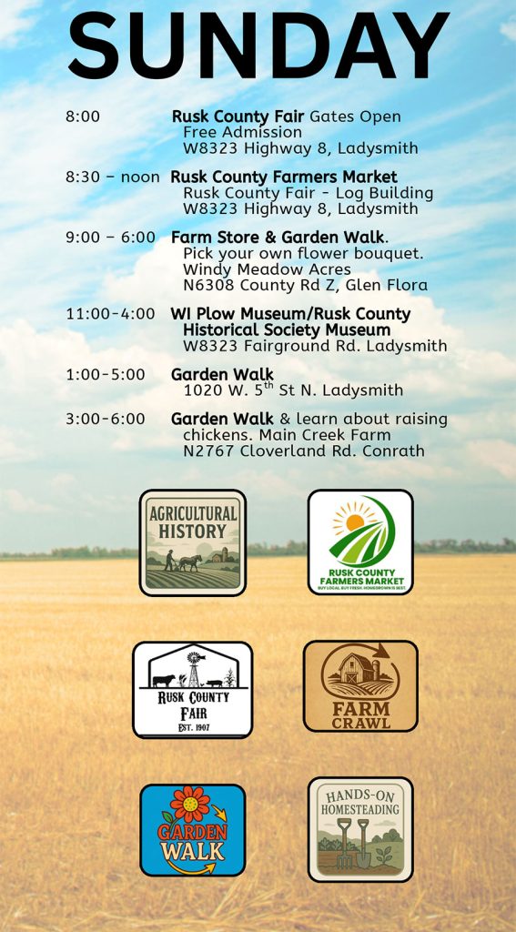 Stop at participating locations, and turn a completed card in at the Bruce Farmers Market, the Ladysmith Outdoor Market, or the Rusk County Visitors Center by August 16th.