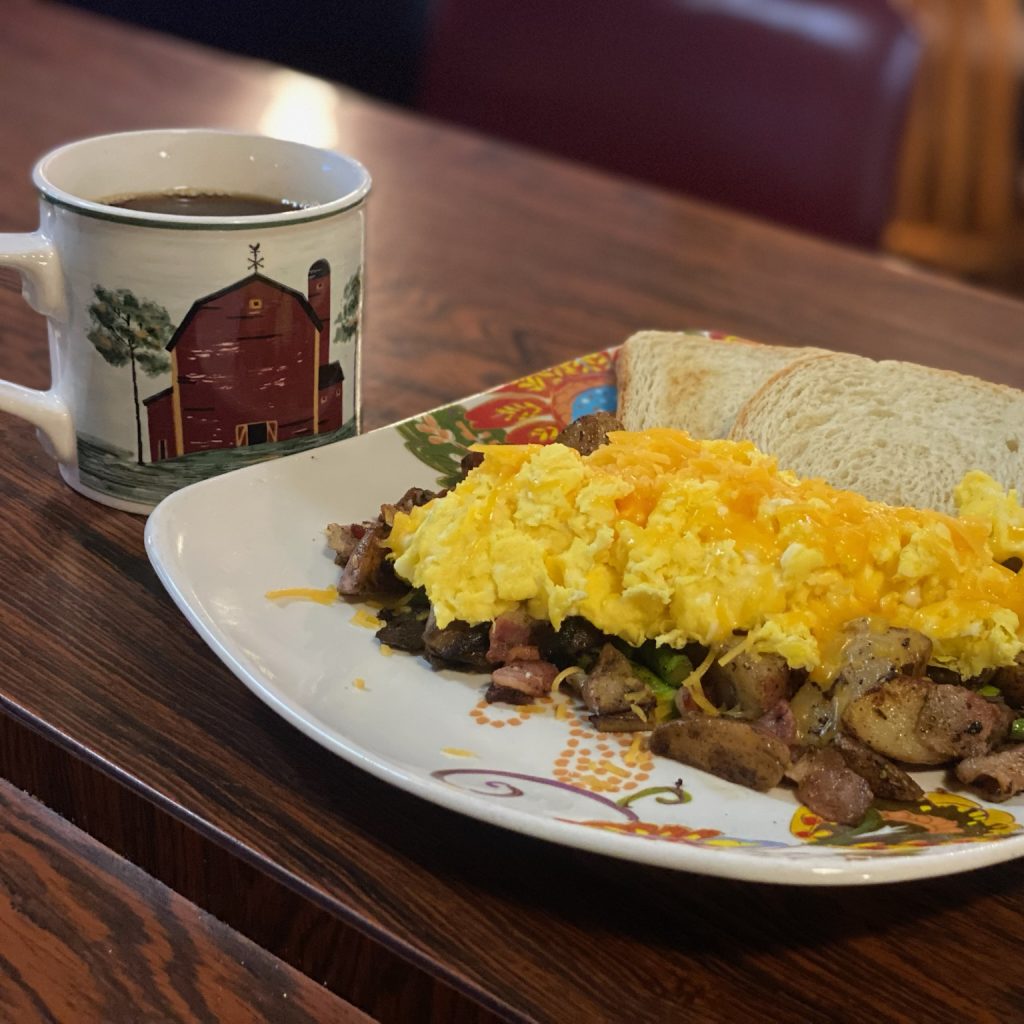 Baked goods sale starting at 7am on Saturday and a specialty breakfast skillet with farm fresh eggs, rosemary garlic diced baby reds, bacon, mushrooms, asparagus and cheese!