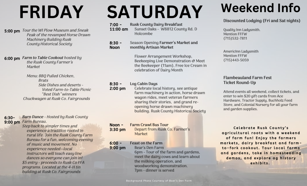 Climb aboard and spend the day exploring real working farms right here in Rusk County.